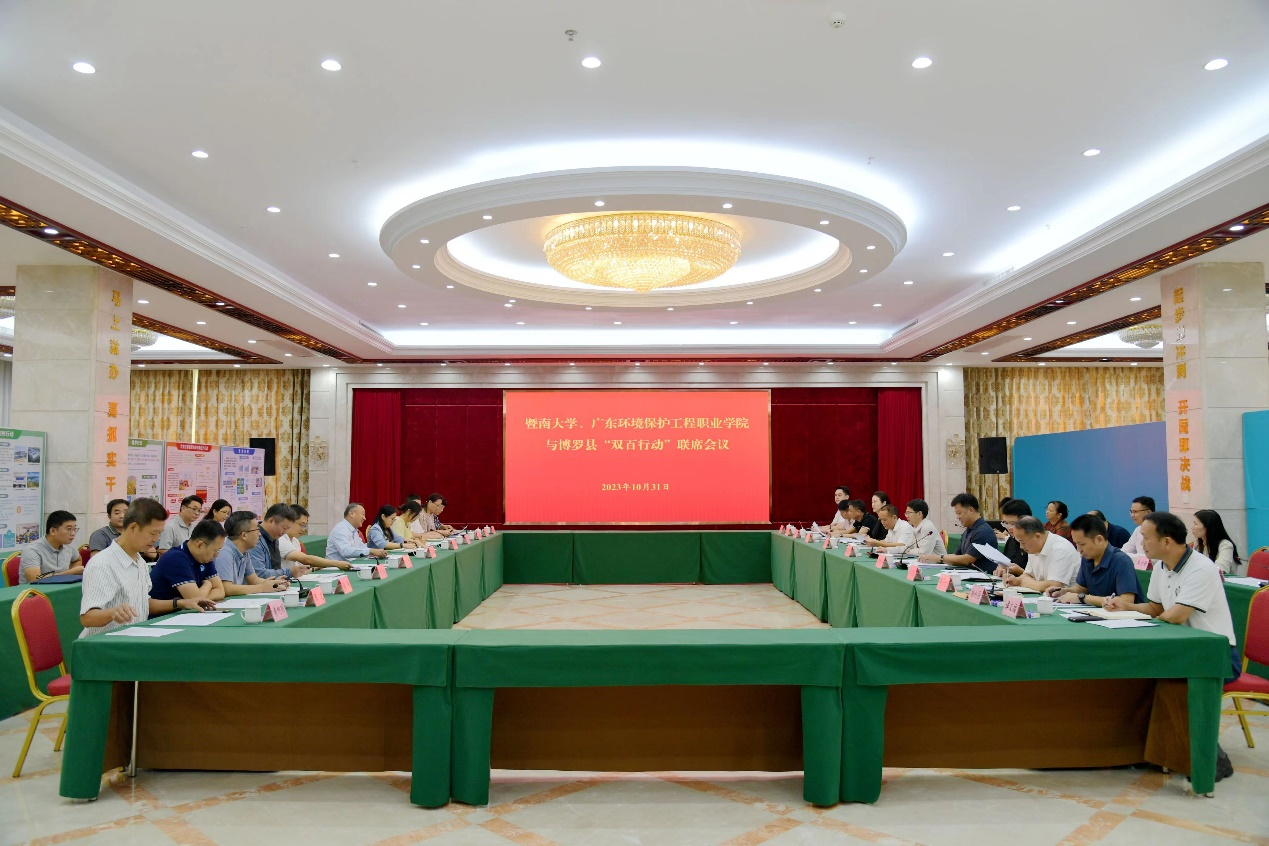 10月31日上午,孙彧一行就结对共建事项与博罗县相关负责人进行交流讨论。博罗县委副书记、县长邱志彪,广东环境保护工程职业学院党委副书记钟真宜出席会议。学校产业经济研究院院长陶峰、环境与气候研究院院长陈达、党委组织部副部长陈龙、乡村振兴工作领导小组办公室主任钟春生、 “双百行动”派驻博罗县服务队队长黄旭明及广东环境保护工程职业学院、博罗县委县政府相关部门同志参加了联席会议。县委常委蔡博润主持会议。