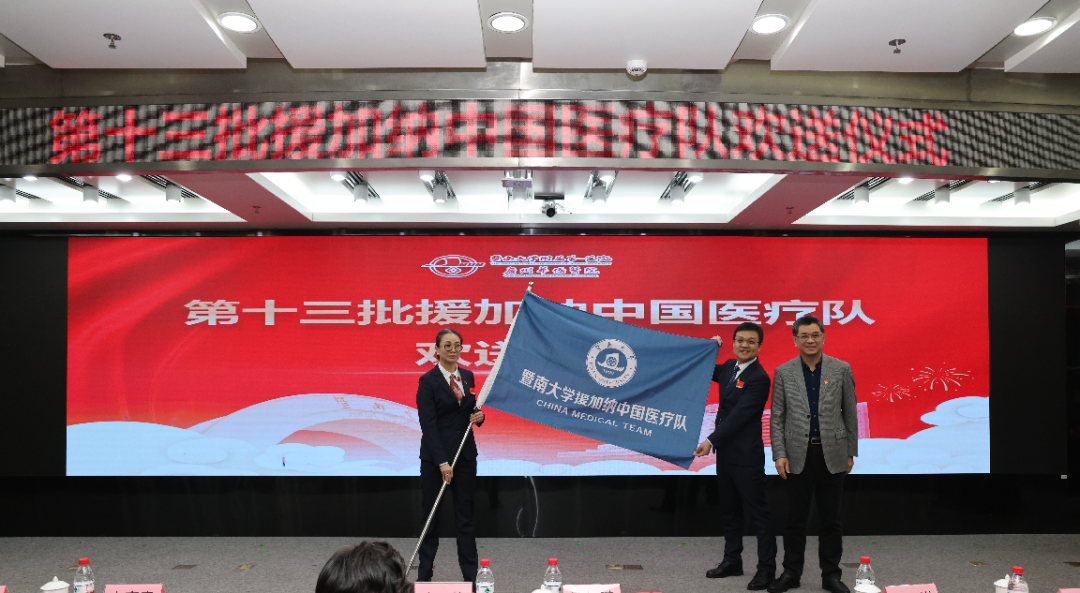 3月7日,医院为即将启程的第13批援加纳中国医疗队举办了欢送仪式。暨南大学党委书记林如鹏、副校长洪岸,广东省侨办主任庞国梅、海外处处长钟威、副处长赵芹,广东省卫生医疗对外合作服务中心副主任韦家森、副主任叶兵、援加纳医疗队队员及家属代表等参加了欢送仪式。仪式由医院党委书记郭军主持。