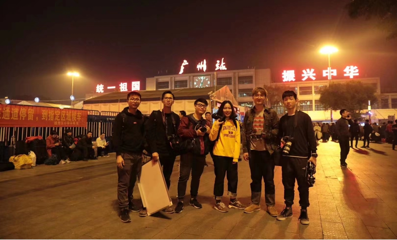 (张海和同伴们在广州火车站进行返乡采访,张海为左二)