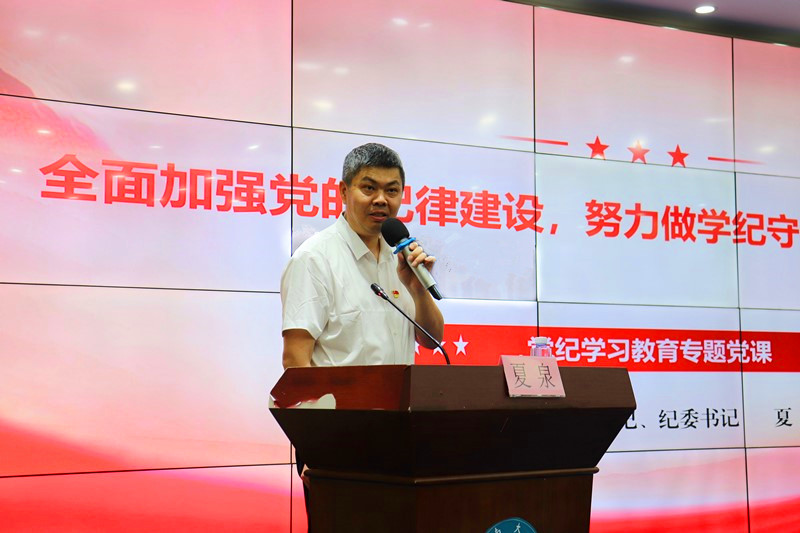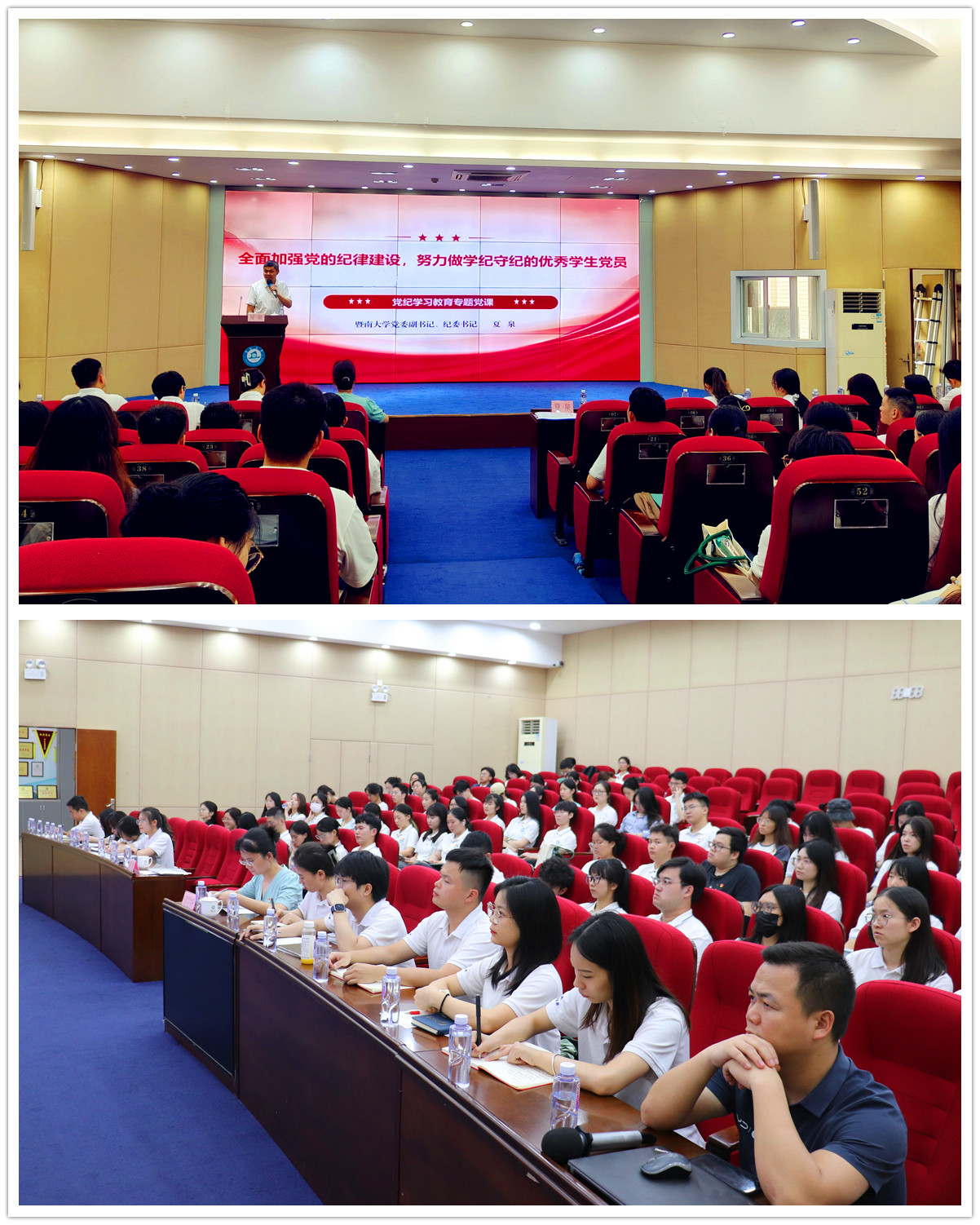 6月12日,暨南大学党委副书记、纪委书记夏泉教授给校院两级“忠信笃敬班”学员、研究生骨干领航计划学员及各学院学生骨干100余名学生党员讲授党纪学习教育专题党课。