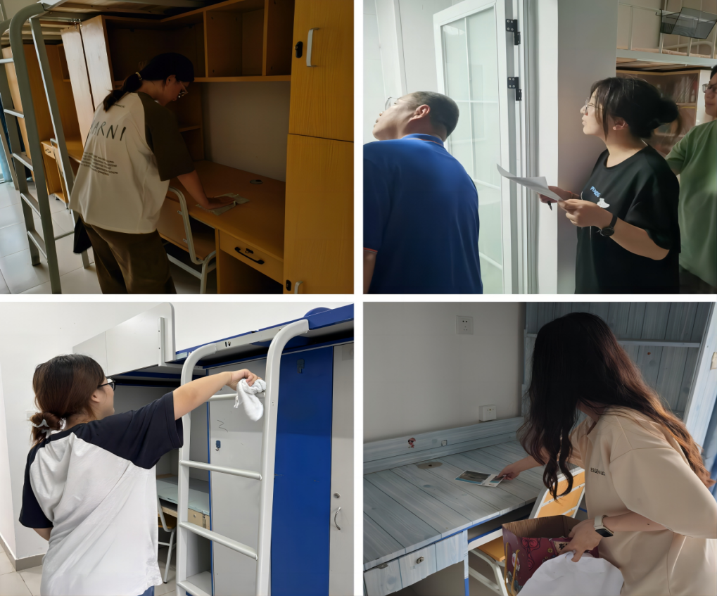 会后,学院领导与班主任、辅导员,带领党员志愿者一同走访新生寝室,仔细检查寝室的设施和环境,并对新生宿舍进行了清洁和布置,努力为新同学打造一个整洁干净、温馨舒适的居住环境。