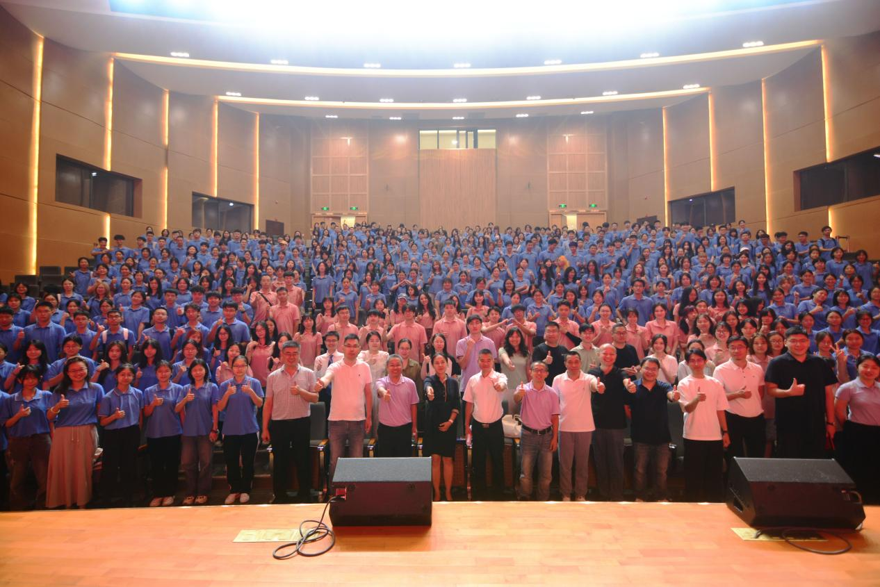 大会结束后,珠海校区管委会行政副主任容浩副教授以《与人文精神同行——兼谈大学生活》为题,为新同学带来“名师第一课”。容浩以校训为引,引导新同学充分认识到精神品质的宝贵,并通过分享自己的支教经历和学长追梦故事,生动阐释了慈悲、真心和韧性等品质的重要性。他勉励新同学无论是在学习生活中,还是在面对社会和国家责任时,都应持有“虽千万人,吾往矣”的决心与行动力。通过该分享,新同学对人文精神的深刻内涵有了更进一步的体悟和理解。