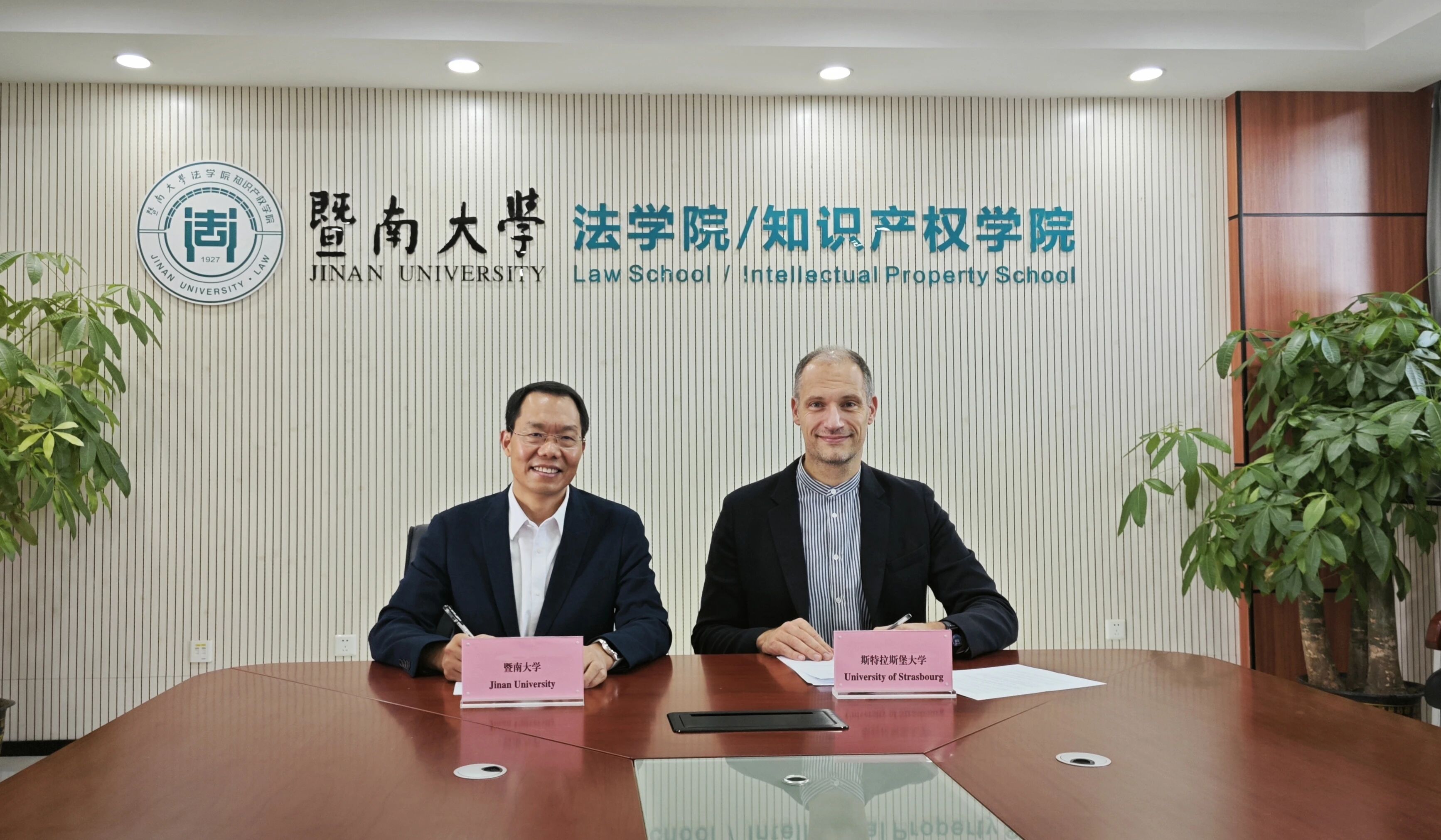 暨南大学融媒体中心讯 9月11日,法国斯特拉斯堡大学国际知识产权中心主任扬·巴奇赫(Yann Basire)应邀来访暨南大学法学院,与学院开展合作交流。学院执行院长、知识产权研究院院长郭宗杰,学院副院长、知识产权研究院副院长吴欣望,院长助理兼知识产权系主任戴哲参加会谈。