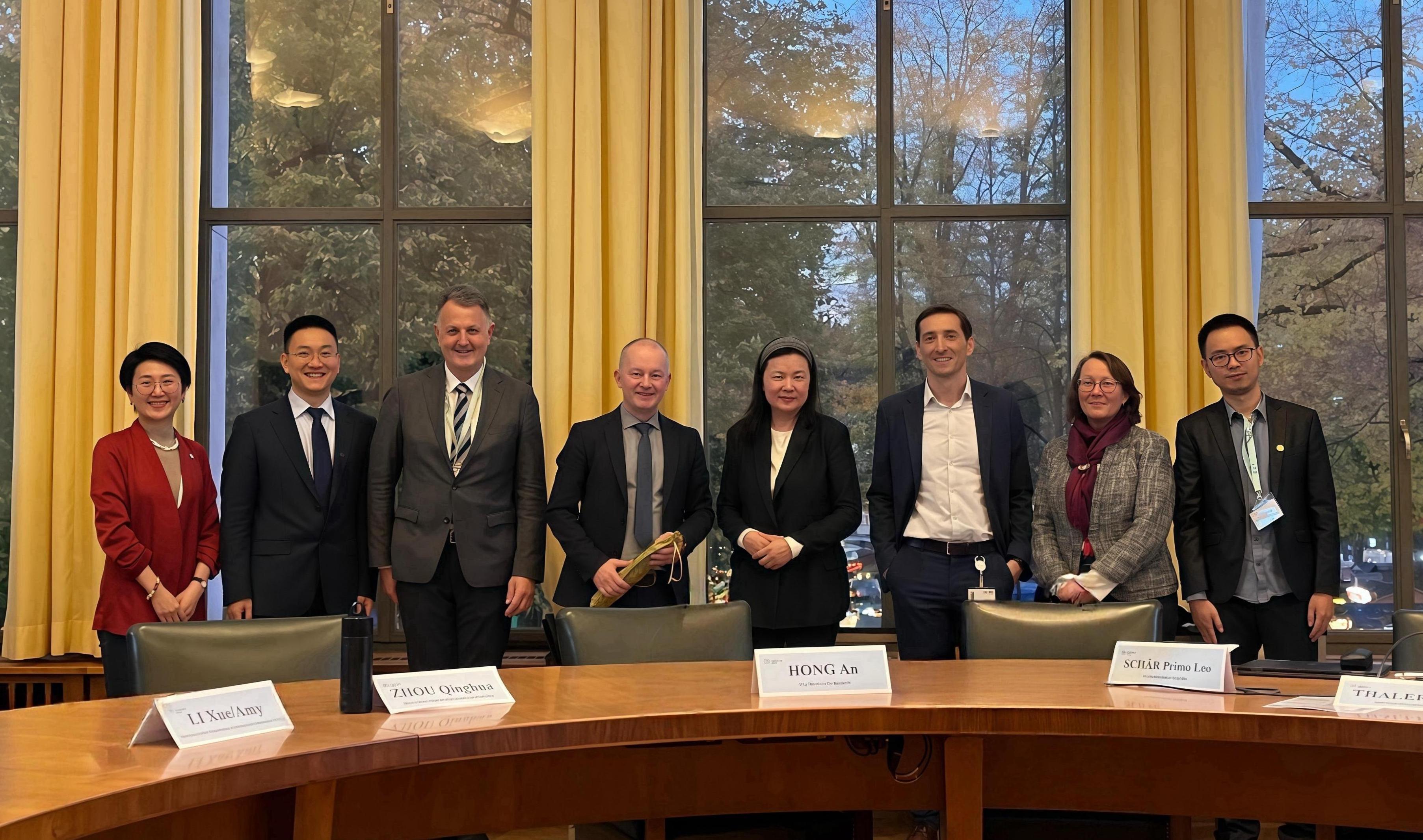 代表团首先访问中国驻苏黎世总领事馆,洪岸介绍了学校与瑞士的合作成果与未来规划,并听取总领事馆的意见和建议。陈昀总领事高度肯定暨南大学与瑞士的交流合作,希望学校继续深化与瑞士的合作关系。