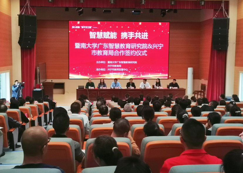暨南大学融媒体中心讯 11月11日,暨南大学广东智慧教育研究院与兴宁市教育局在兴宁市教师发展中心举行框架合作协议签约仪式。