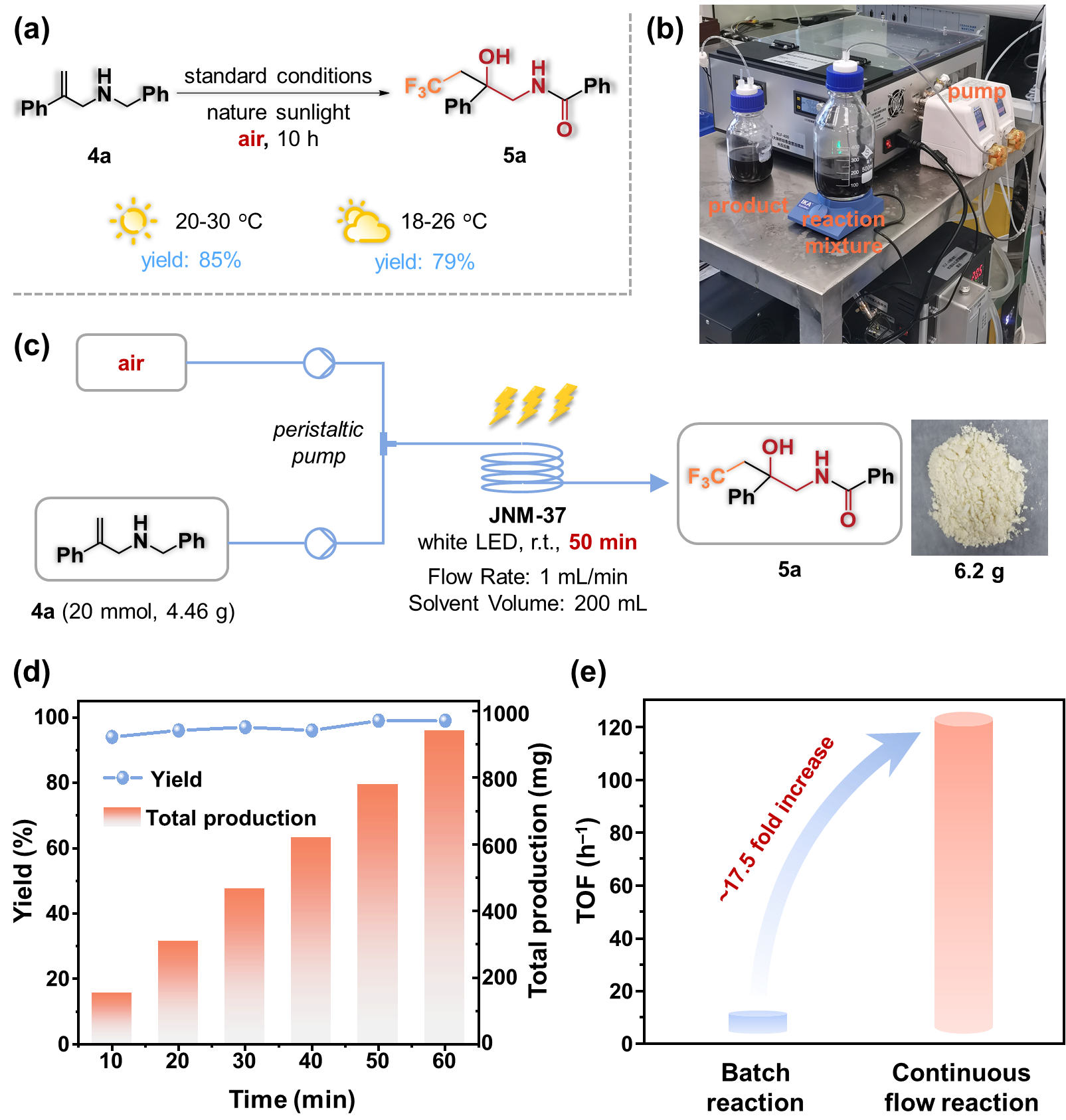 在空气或二氧化碳气氛中,CMOF可一步光催化合成含三氟甲基的β-氨基醇。