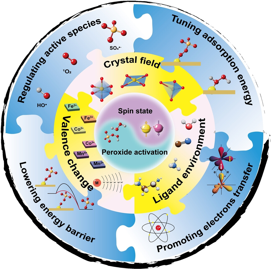 此外,课题组在Angewandte上系统综述了高级氧化过程中的过氧化物活化调控机制,探讨了通过晶场调控、配体工程与价态设计等手段调控活化材料自旋态策略,实现过氧化物高效活化(Angew. Chem. Int. Ed. 2025, 64, e202500791)。