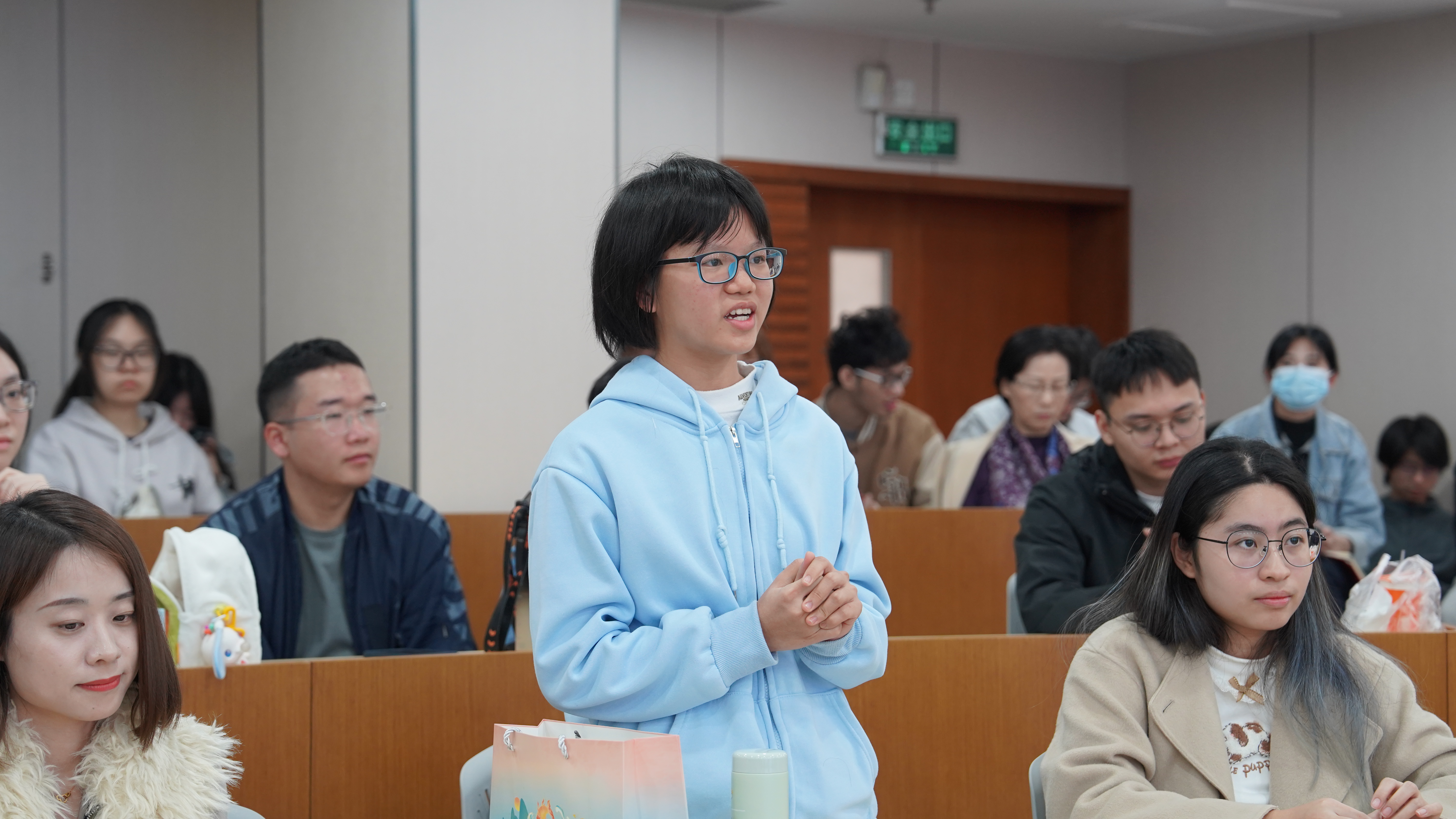 在对谈与提问环节,徐宁与喻季欣围绕极地科考的人文意义与时代价值展开交流。喻季欣结合自身随队见闻,认为极地事业不仅是科学探索,更是精神砥砺与国家形象的展示。在互动环节,同学们围绕科考队员的素质要求、极地环境保护、动植物保育、日常生活保障等方面踊跃提问,徐宁与喻季欣一一细致解答,现场气氛热烈。