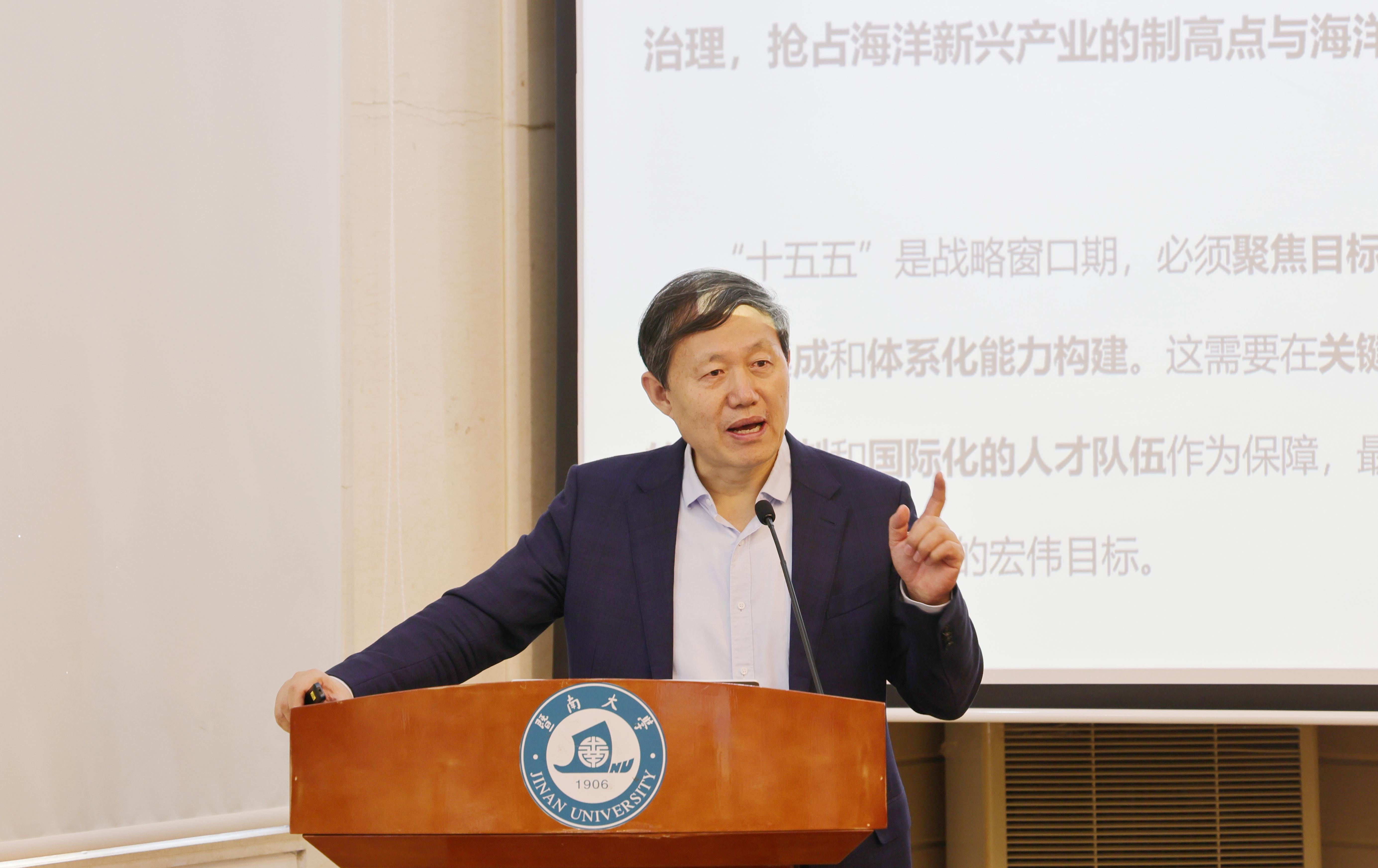 暨南大学融媒体中心讯 近日,首场“百廿暨南,声教四海”暨南大学120周年校庆系列学术讲座之“暨大·绿构未来”论坛暨“海洋资源绿色开发学科突破先导项目”实施方案审议会在石牌校区行政楼1111会议室召开。中国工程院院士、中国海洋大学李华军;中国工程院院士、暨南大学校长邢锋;中国海洋大学副校长刘勇,教授梁丙臣、王树青、陈旭光、杜君峰;深圳大学教授周英武、朱建波、陈彬以及相关学院学术带头人、青年科技才俊、项目组学生和相关职能部处负责人等70余人参加会议。会议由科学技术研究处处长陈填烽主持。