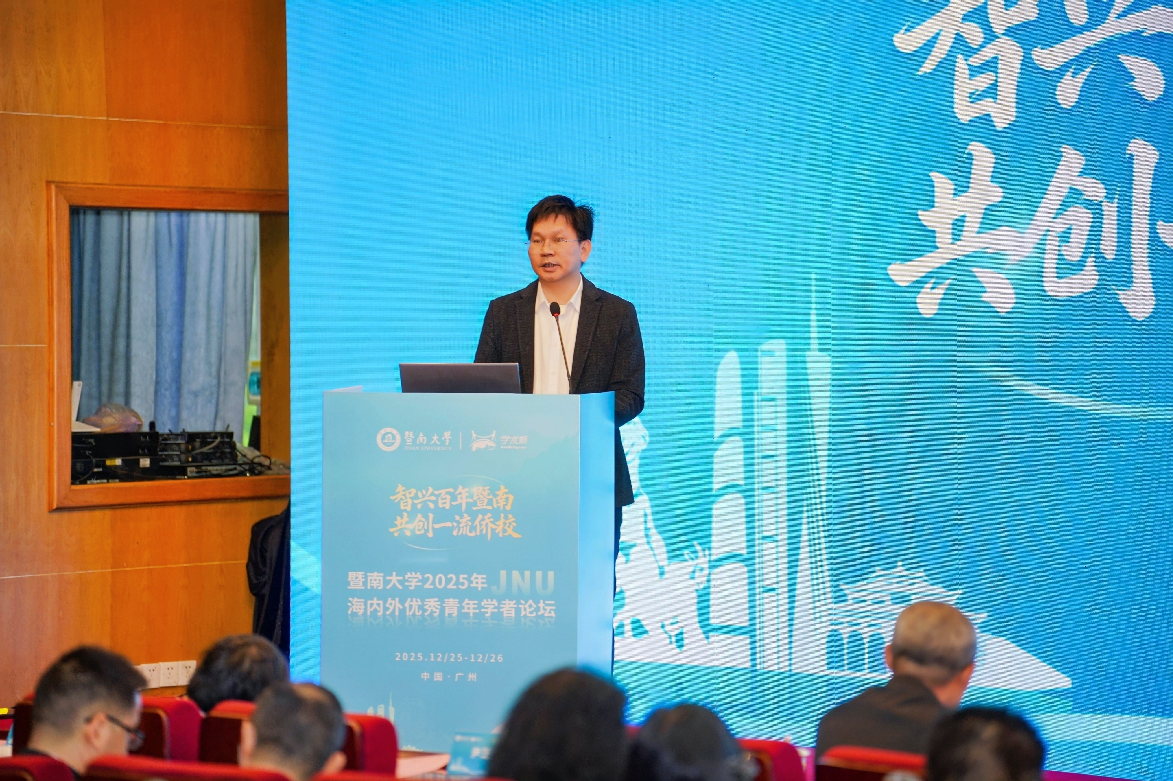 暨南大学融媒体中心讯 为构建具有国际竞争优势的人力资源体系,助力粤港澳大湾区高层次人才发展,深入推进人才强校战略,强化海内外引才力度,12月25日上午,暨南大学2025年海内外优秀青年学者论坛在石牌校区曾宪梓科学馆会议厅举办。学校副校长翁健出席会议,各学院/研究院负责人、人才工作联系人及各职能部门、直属单位负责人参会;人力资源开发与管理处处长、人才工作办公室主任谷世乾主持主论坛。本次论坛采用“线上+线下”融合模式面向全球直播,近60位海内外优秀青年学者现场参会,吸引国内外知名高校、科研院所的青年人才超9000人次线上参与交流,搭建起高效引才与学术对话的全球桥梁。