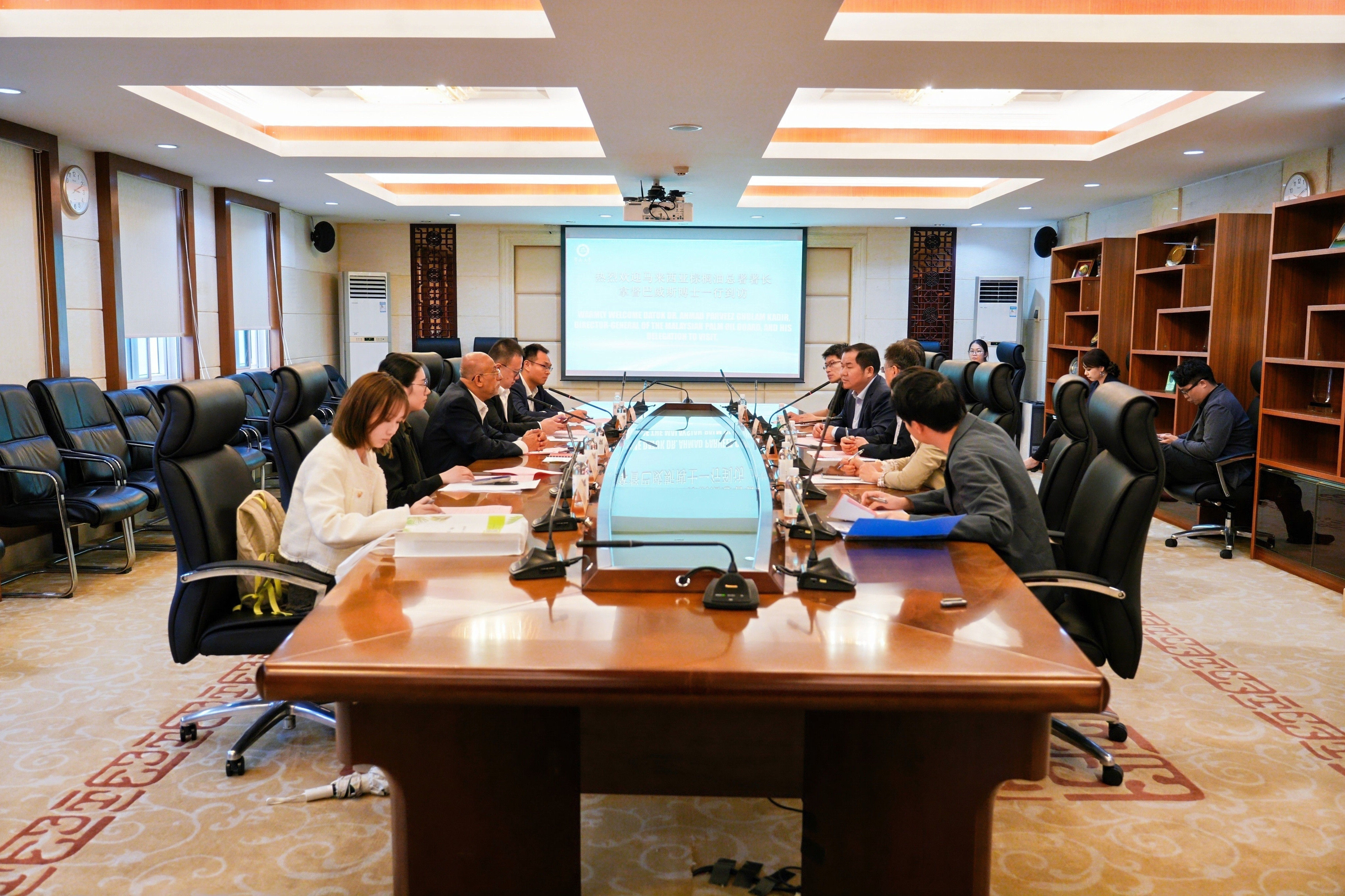 暨南大学融媒体中心讯 4月24日,马来西亚棕榈油总署署长拿督巴威斯博士一行访问我校,并与学校举行合作洽谈会。学校副校长张宏,国际交流合作处处长王昱,国际学院院长/中国—马来西亚油脂加工与安全“一带一路”联合实验室中方主任汪勇出席有关活动。