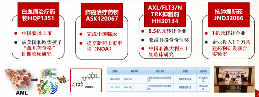 此外,围绕恶性肿瘤临床耐药和难治等重大临床需求,近年来成功设计和开发了Bcr-Ab1T3151突变体抑制剂GZD824,并于2021年中国获批上市(奥雷巴替尼,耐立克®)并被美国FDA和欧洲委员会EC授予“孤儿药”资格和优先评审资格,标志着由中国人自主设计化合物实体、中国科研机构独立完成成药性评价、中国企业独立完成临床研发的“中国智造药”已走向世界,为全球慢性粒细胞性白血病耐药患者提供了中国方案。