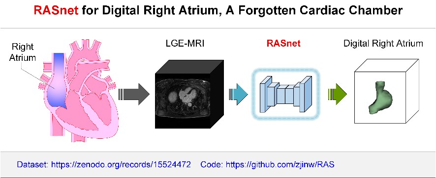 近日,暨南大学副教授白杰云、教授张晓慎团队联合奥克兰大学、曼彻斯特大学等国际机构研究者,创新性地提出了基于3D深度学习网络RASnet的两阶段分割框架,首次在延迟钆增强磁共振成像(LGE-MRI)中实现右心房的高精度自动化分割,建立了该领域的基准模型,为心脏疾病的精准评估提供了关键工具。相关成果发表于《IEEE医学成像汇刊》。