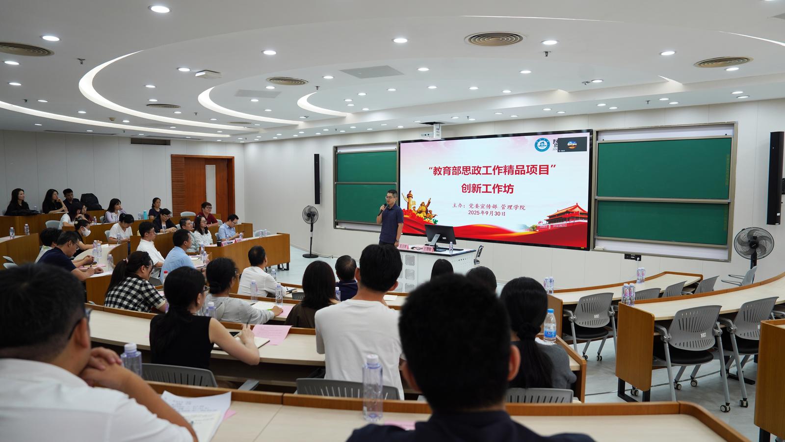 暨南大学融媒体中心讯 9月30日,学校在管理学院219室举行“教育部思政工作精品项目”创新工作坊,旨在贯彻落实全国教育大会精神和《中国共产党思想政治工作条例》《教育强国建设规划纲要(2024—2035年)》相关要求,进一步做好2026年教育部思想政治工作质量提升综合改革与精品建设项目的组织工作。