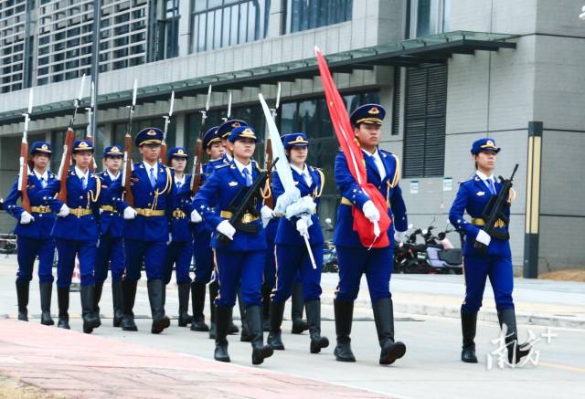 东莞理工学院国旗护卫队自2017年成立以来,承担着学校每月升旗活动,以及国庆节、建军节、学校开学典礼、毕业典礼、运动会开幕式等重大节点和活动的升旗任务,铸就了国护队队员坚如磐石的政治品格和精益求精的作风素养。