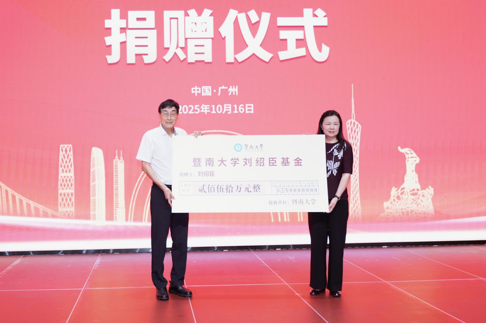 暨南大学融媒体中心讯 10月16日,暨南大学刘绍臣基金捐赠仪式在番禺校区举行,世界科学院院士、暨南大学教授刘绍臣捐赠250万元人民币设立基金,支持学校环境与气候学院及广东省南岭森林大气环境与碳中和野外科学观测研究站的建设与发展。学校党委书记孙彧,副校长洪岸出席捐赠仪式,学校教育发展基金会理事长梁燕主持活动。