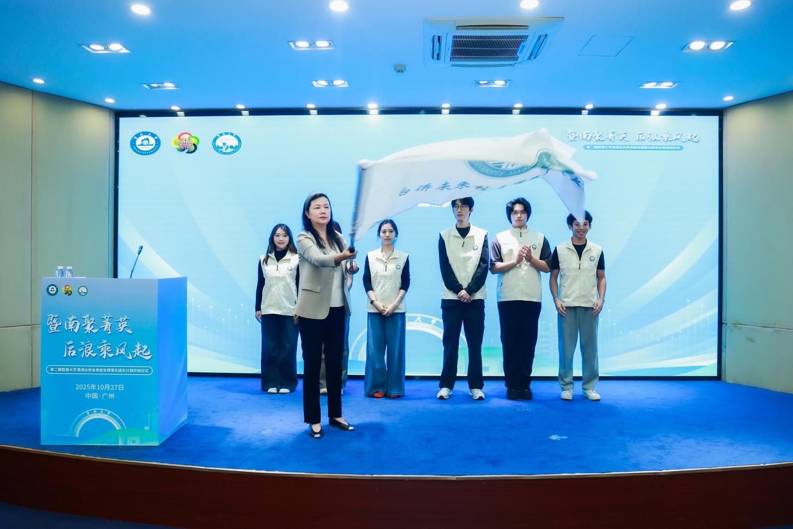 暨南大学融媒体中心讯 10月27日,暨南大学港澳台侨未来校友理事长成长计划开班仪式在石牌校区校友楼4楼会议厅举行,活动以“暨南聚菁英,后浪乘风起”为主题。暨南大学副校长洪岸及各学院部处领导出席仪式。来自南非、苏里南、西班牙、蒙古等国家及港澳台地区的60名学员,将以成为未来校友理事长为目标,筑牢自身能力根基,主动担当文化传承与推广使命,为搭建母校与校友间的桥梁和纽带蓄力。