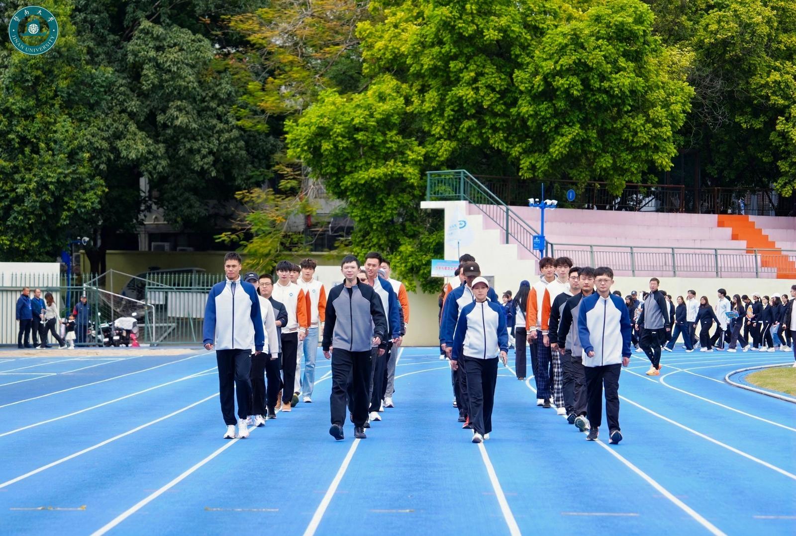 暨南大学融媒体中心讯 11月20日下午,暨南大学第五十一届田径运动会开幕式在石牌校区旭日运动场举行。暨南大学党委书记孙彧、暨南大学校长邢锋、党委副书记夏泉、副校长张宏、党委副书记陈莹、副校长顾乃华及各机关部处、学院、直属单位领导、裁判员和参赛师生参加开幕式。开幕式由党委副书记陈莹主持。