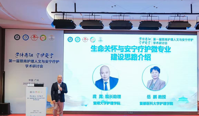 此次开幕式还举行了生命关怀与安宁疗护微专业启动仪式。该微专业是由暨南大学护理学院院长助理龚霓副教授牵头,联合首都医科大学护理学院岳鹏教授共同筹备与建设的。会上两位教授介绍了微专业建设思路,重点阐释了双轮驱动的培养模式,以及依托“安南睦北”课题组跨校协作优势、整合两校教学科研资源的建设路径。