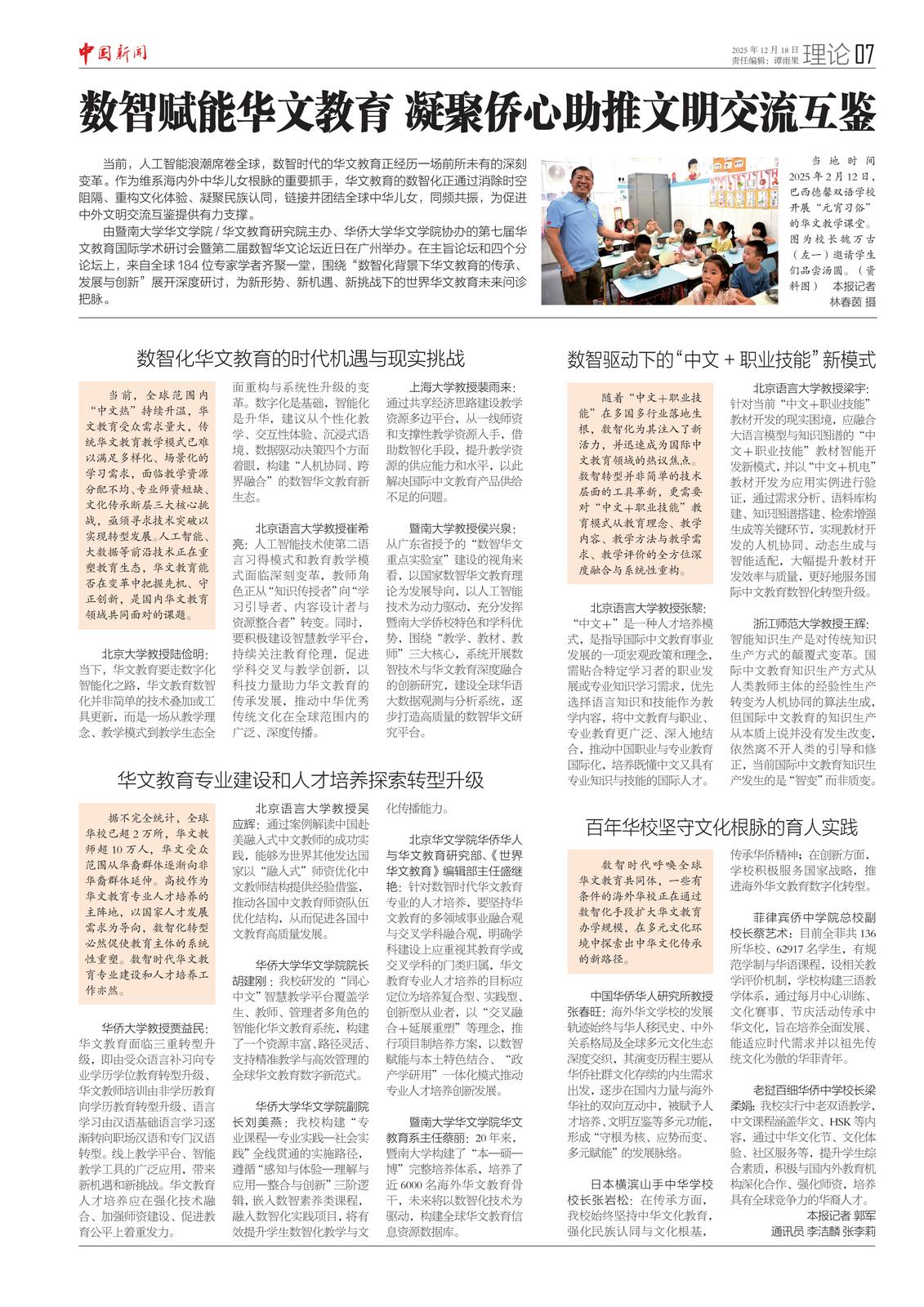 暨南大学华文学院华文教育系主任蔡丽:20年来,暨南大学构建了“本—硕—博”完整培养体系,培养了近6000名海外华文教育骨干,未来将以数智化技术为驱动,构建全球华文教育信息资源数据库。
