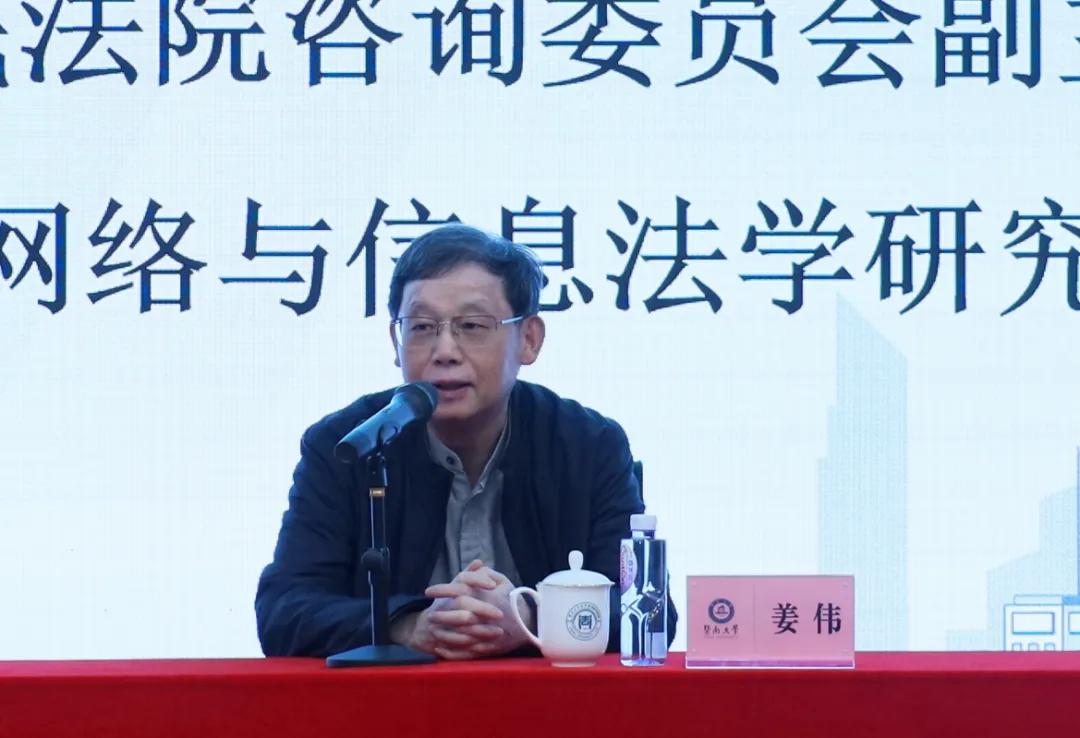 暨南大学融媒体中心讯 1月10日下午,“暨南法学论坛·名师讲坛”第211讲在暨南大学番禺校区知识产权大楼221教室举行。本次讲座特邀最高人民法院咨询委员会副主任委员、中国法学会网络与信息法学研究会会长姜伟作“数字法治的若干问题”的专题讲座。