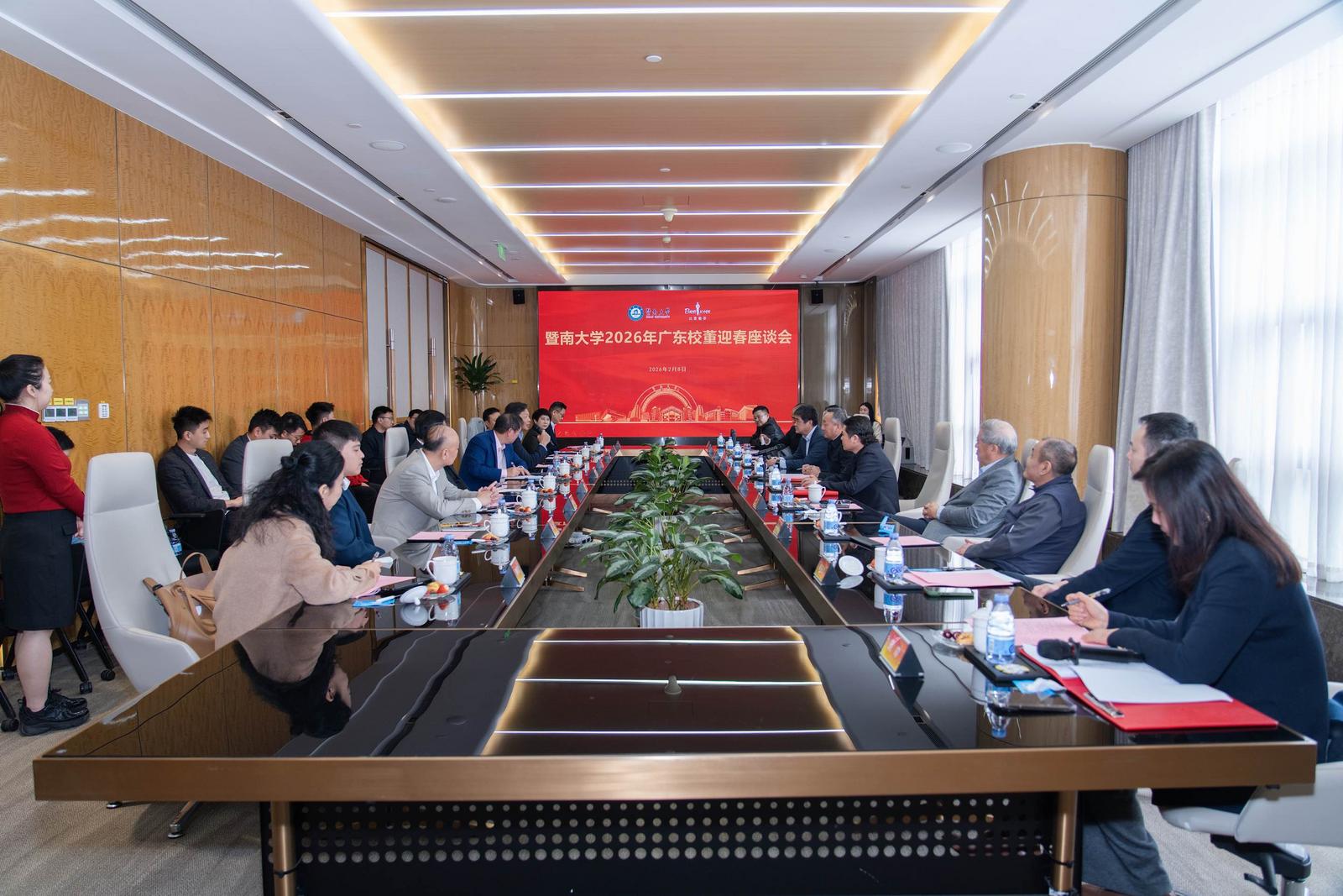 暨南大学融媒体中心讯 2月8日,暨南大学举行2026年广东校董座谈会。暨南大学校友总会会长、原校长胡军,暨南大学董事会董事、原校长宋献中,董事会董事谢秉政、梁志斌、叶惠全、彭磷基、梁仲景、岑钊雄、赖宁昌、胡智荣、吴闻杰、霍启文,校党委书记孙彧、校长邢锋出席会议。会议由暨南大学副校长洪岸主持。